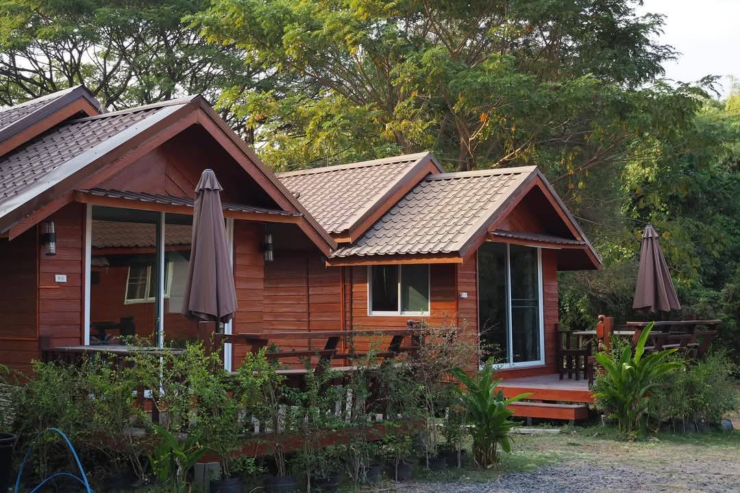 บ้านพักเรือนหมู่ สำหรับ หมู่คณะ ริมแม่น้ำ พร้อม ดาดฟ้าชมวิว เรือนหมู่ 3 ห้องนอน 2 ห้องเตียงคู่ 1 ห้องเตียงเดี่ยว ห้องน้ำในตัว ทุกห้อง แอร์ ทีวี ตู้เย็น อุปกรณ์ปิ่งย่าง ปิคนิค พักได้ 10 - 12 ท่าน เสริมได้ 2 ท่าน