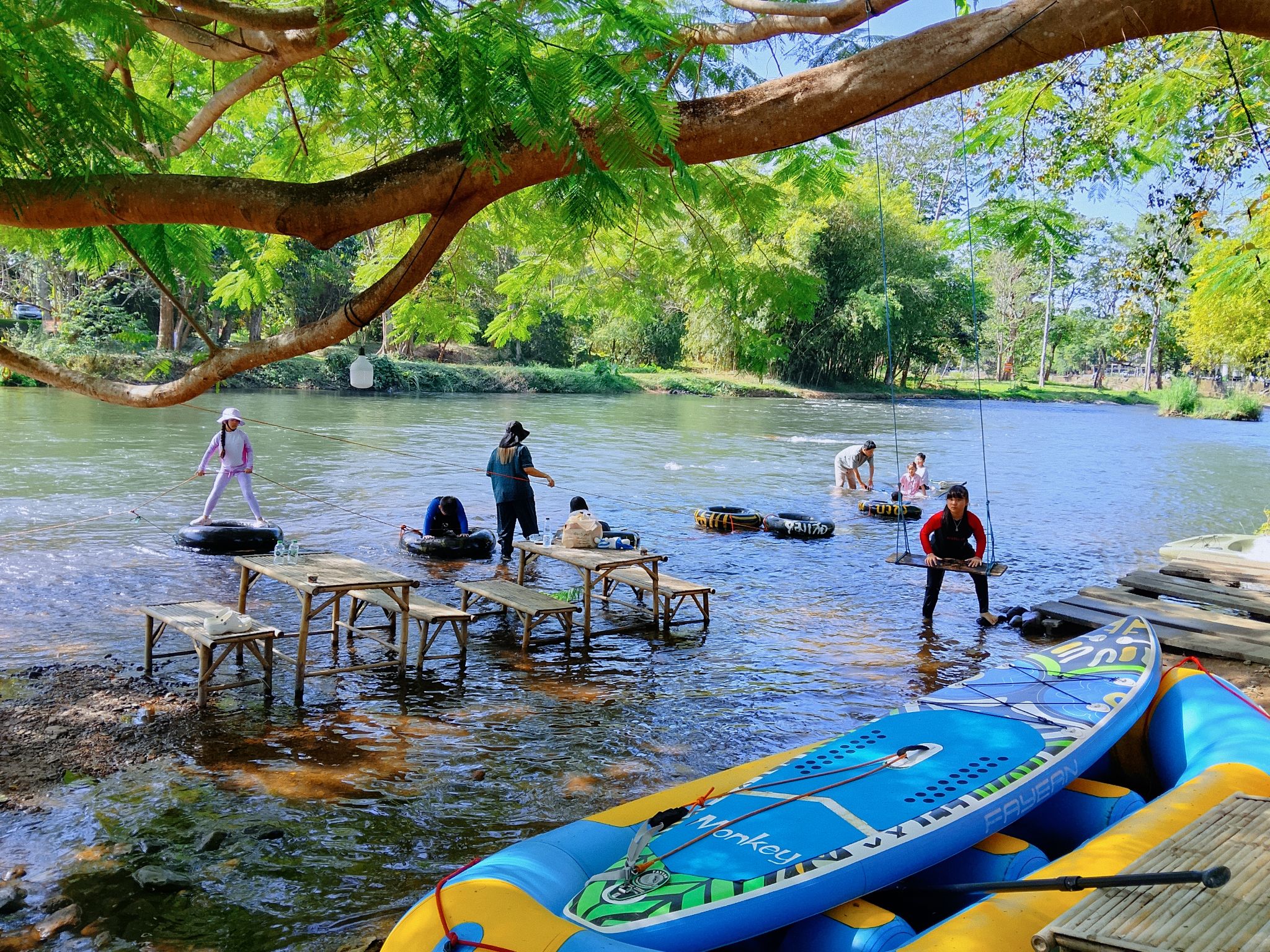 เราเปิดให้บริการสำหรับ นักท่องเที่ยว ทั่วไป บริการกิจกรรมท่องเที่ยวผจญภัย ล่องแก่ง พายเรือ คยัค แคนู SUP ขี่รถ ATV ปิคนิค เล่นน้ำ สามารถทำอาหารได้ เป็นภาระกิจหลักๆของเรา
